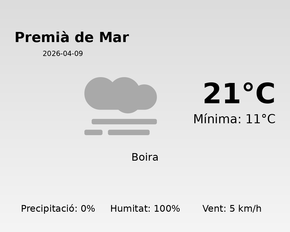En resum, Premià de Mar gaudirà d’un dia suau i sense pluja, amb algunes núvols que cobraran el cel però que no deixaran precipitació. Aproveu aquest dia primaveral i gaudiu de la suau temperatura!