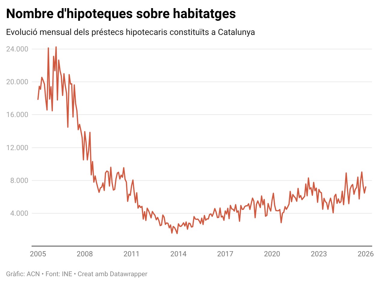 ACN Barcelona - Catalunya comença el 2026 amb 7.212 hipoteques sobre habitatge inscrites, la dada…