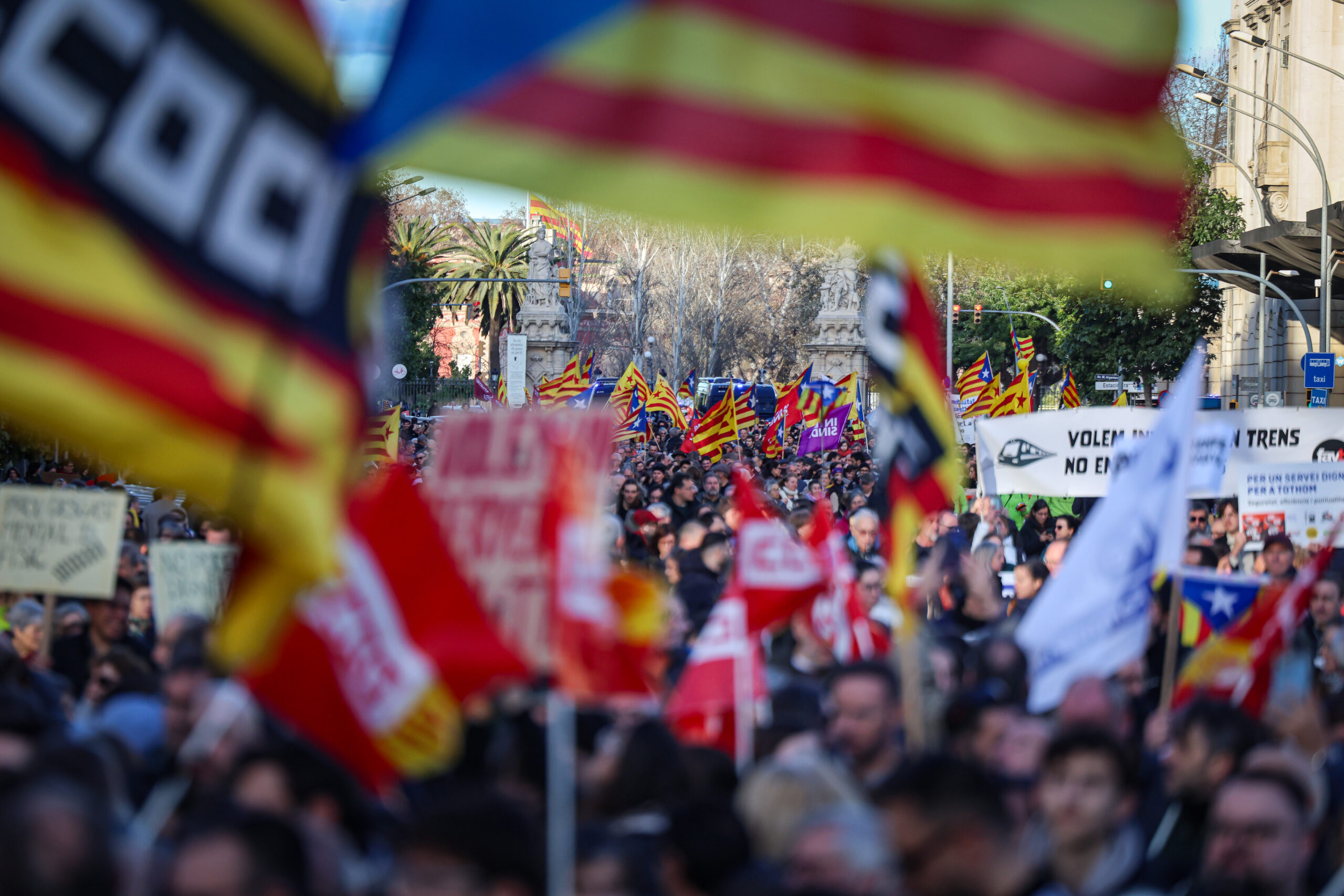 ACN Barcelona – Milers de persones han participat aquest dissabte a la tarda a la manifestació convocada per una vintena d’entitats per denunciar la situació de Rodalies. La marxa, amb lema ‘Sense trens no hi ha futur’, ha començat a les cinc de la tarda a l’estació de França de Barcelona i ha acabat a les sis a la plaça Sant Jaume. Els convocants han denunciat retards, manca de seguretat, desinversió i una mala gestió d’Adif, Renfe i els governs de l’Estat i Catalunya. Segons la Guàrdia Urbana, la participació en la manifestació ha estat de 3.000 persones, mentre que els organitzadors eleven la xifra a 40.000. La marxa arriba hores després de la que han convocat l’ANC i el Consell de la República, que ha aplegat un gruix més important de manifestants.