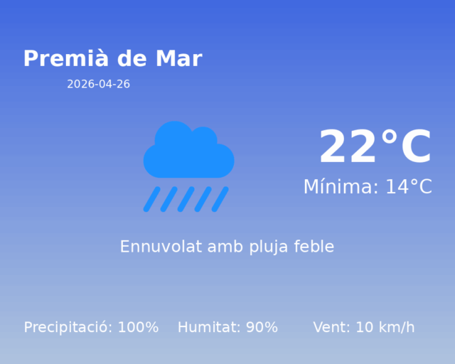 Predicció del Temps per a Premià de Mar – 26 d’Abril de 2026