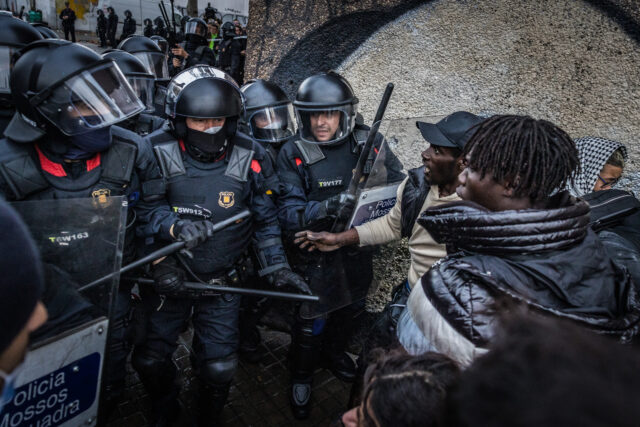 ACN Badalona – Un ampli desplegament dels Mossos ha començat a les 8.20 hores el desallotjament de l’antic institut B9 de Badalona, a instància del jutjat contenciós administratiu número 11 de Barcelona. Els agents s’han desplegat poc abans de les set del matí al voltant de l’espai, però no ha estat fins que s’ha fet de dia que ha començat l’actuació. En fer-ho, han demanat per megafonia als ocupants que marxessin voluntàriament. Alguns ho han fet, però d’altres, concentrats al vial per on s’accedeix a l’espai, han mostrat certa resistència i s’ha produït alguna empenta i cop. Finalment, els mossos han entrat a l’antic institut cap a les 8.45 hores. A l’espai hi havien arribat a malviure uns 400 migrants, però molts han anat marxant els darrers dies.