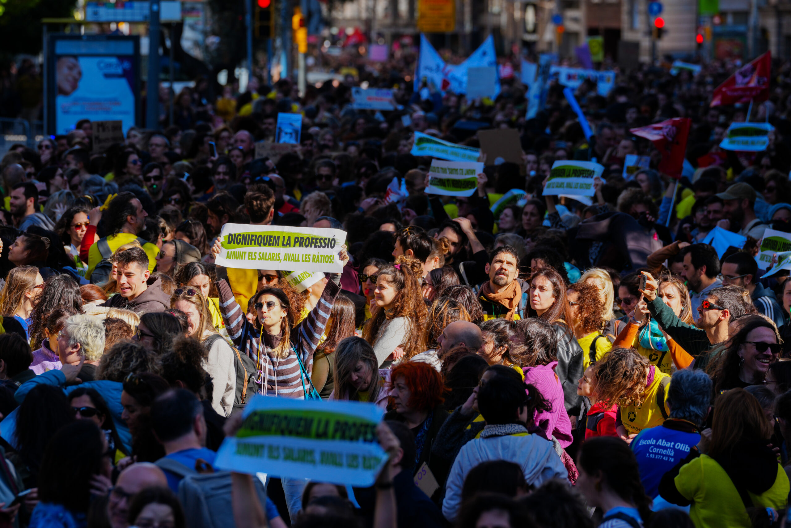 “La pressió als carrers funciona. Tenim una voluntat negociadora per part de l’administració que no havíem tingut fins ara i ha estat gràcies a aquestes mobilitzacions”, ha afirmat la portaveu nacional d’USTEC-STEs, Iolanada Segura.