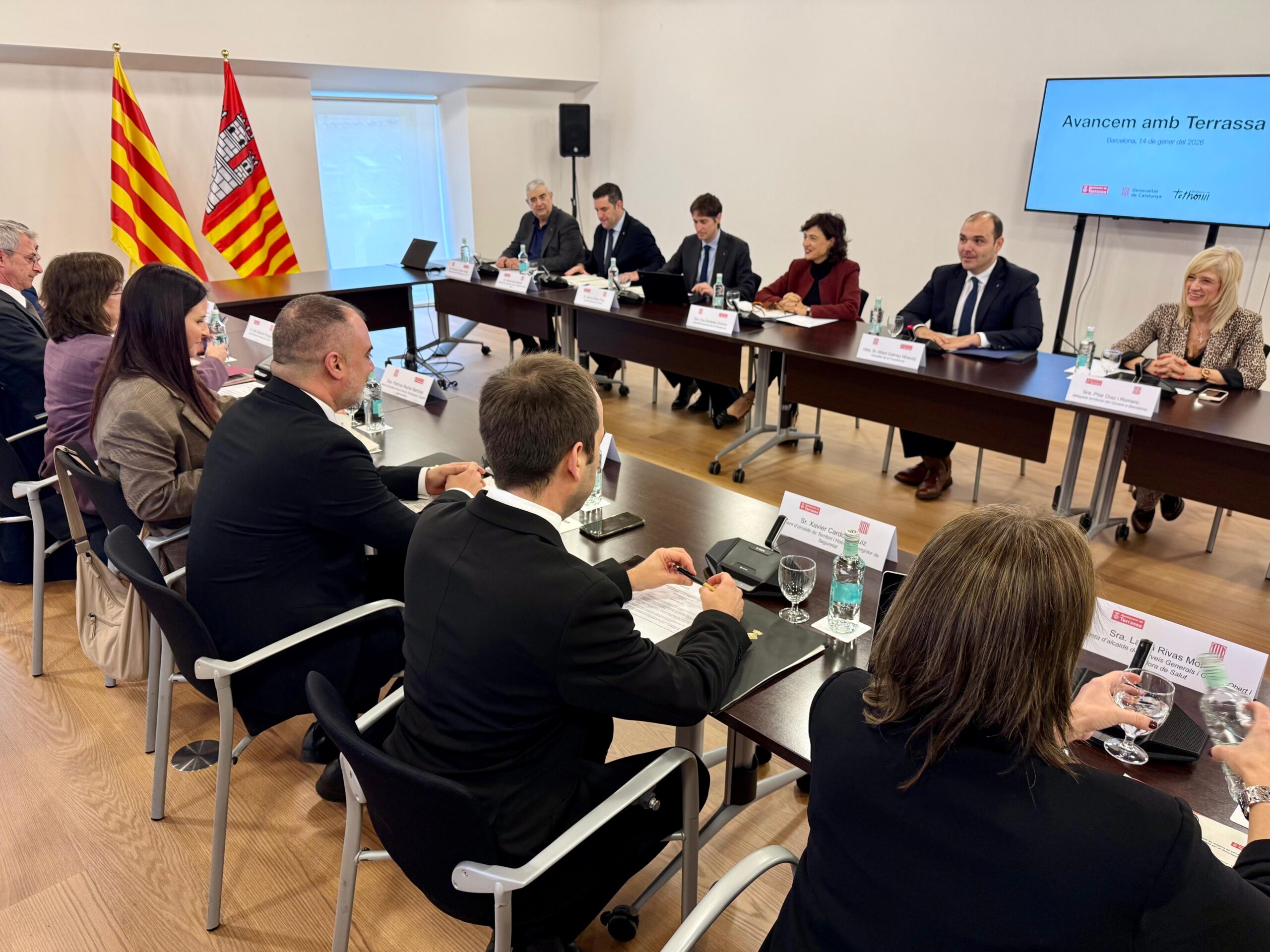 Després de diversos ajornaments, la Comissió Bilateral entre l’Ajuntament de Terrassa i la Generalitat, la primera amb l’actual executiu català, s’ha reunit aquest matí al Palau de la Generalitat. Presidida pel conseller de la Presidència, Albert Dalmau, i l’alcalde de Terrassa, Jordi Ballart, ha comptat amb la participació de set secretaris i directors generals, per part del Govern, i de set regidors per part del consistori vallenc.