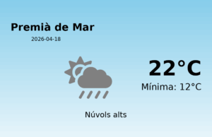 Predicció meteorològica per a Premià de Mar - 3 de desembre de 2025 Avui, Premià de Mar experimentarà un clima típicament hivernal, amb temperatures que...