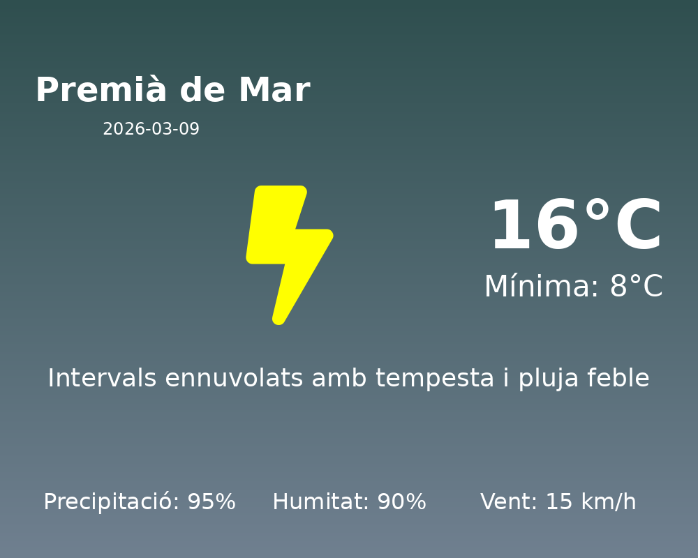 Bon dia a tots els habitants de Premià de Mar! Aquí us portem la predicció meteorològica per a avui, 9 de març de 2026.