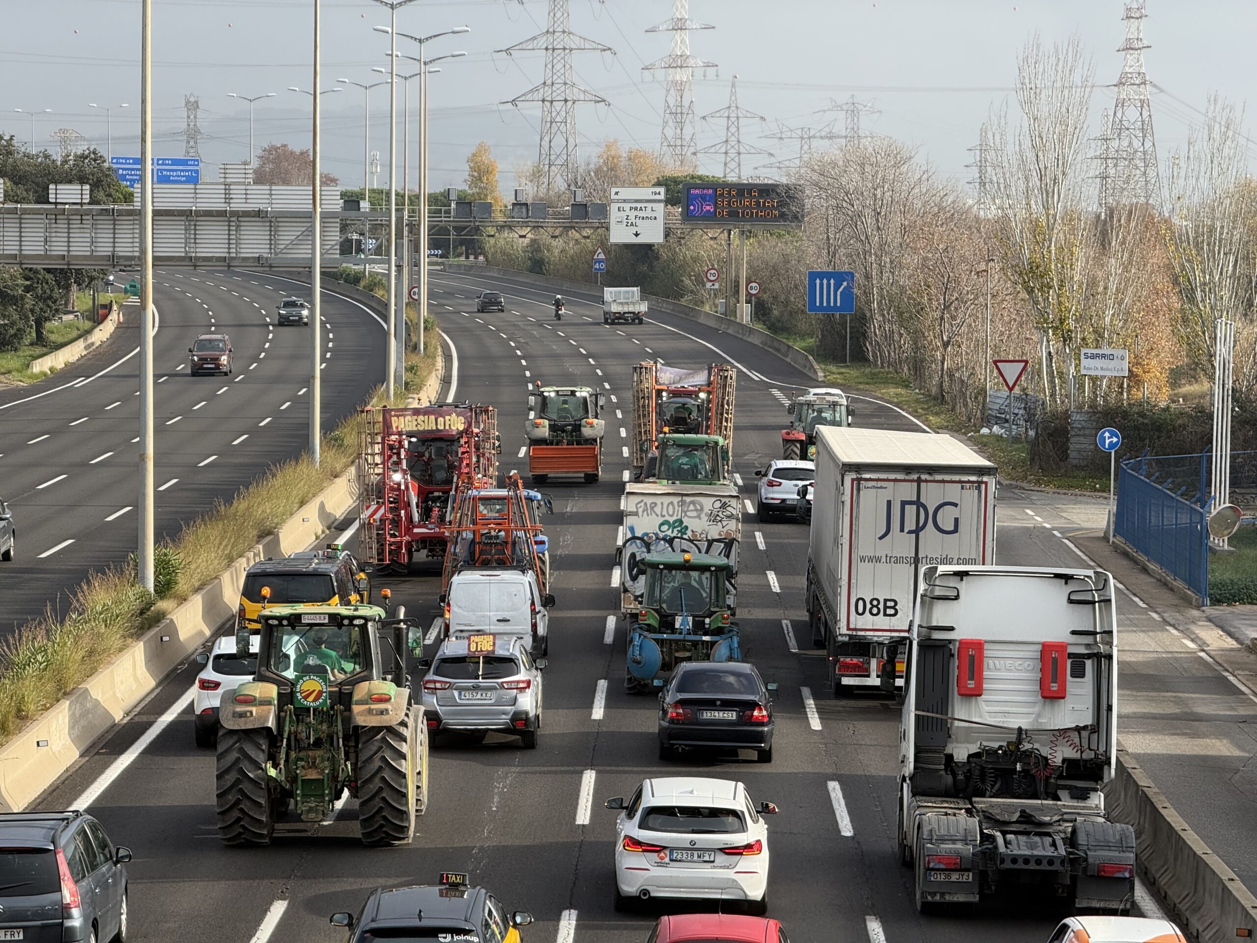 ACN Barcelona – Una trentena de pagesos del Baix Llobregat han fet una tractorada aquest dimarts per protestar contra l’ampliació de la ZEPA del Parc Agrari. La marxa lenta ha sortit a les 10 del matí de Sant Boi de Llobregat per dirigir-se al centre de Barcelona passant per la C-31, la Gran Via i Via Laietana. Sota la pluja, la marxa ha provocat importants retencions, especialment a l’entrada de la capital catalana. Convocats per Unió de Pagesos, els participants han denunciat que l’ampliació de la zona protegida fins les més de 1.300 hectàrees posarà en seriòs perill la seva activitat perquè no permetrà, per exemple, construir hivernacles o controlar l’excés d’aús.